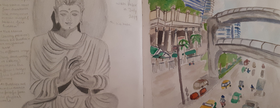 At the end of August, I finished my job at the Summer camp, meaning I still had a month left for relaxation. Due to the busy schedule I did not have much time to do any kind of art. I decided to use the rest of my days in London as inspiration to start a little Travel sketchbook. Everyday I take a photo of what I was doing on that day or something that brought me joy. I drew this into my sketchbook on the spot or if there was no time, I would make sure to sketch it later in the day. Due to being on my feet a lot I learned how to have certain Art supplies with me